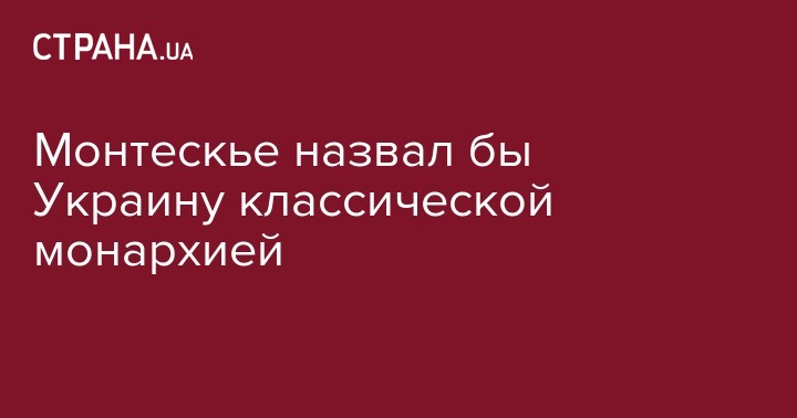 Шарля де Монтескьё считают одним из родителей идеи разделения ветвей власти. В своей книге "О духе закона" он постоянно сравнивает два вида правления - монархию и республику. И современная Украина по всем признакам подпадает именно под описание монархии, под единоличное правление.