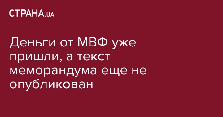 Обратите внимание, деньги МВФ в Украину уже пришли, а текст меморандума с МВФ до сих пор на официальных ресурсах правительства не опубликован.