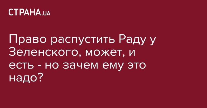 Любые новые выборы в Верховную Раду это большая возня и много расходов, поэтому для Владимира Зеленского это просто невыгодно. Тем более, что утверждение программы правительства Шмыгаля, ничего не меняет, все нужные министры и так на местах, а торги на счет новых министров продолжаются. Кроме того, в истории Украины были момент (ВРЕМЕНА ПОРОШЕНКО), когда даже по закону нужно было проводить новые выборы, а Порошенко это не делал и удачно "работал" весь свой президентский срок..
