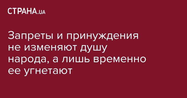Запреты и принуждения не изменяют душу народа, а лишь угнетают её временно.