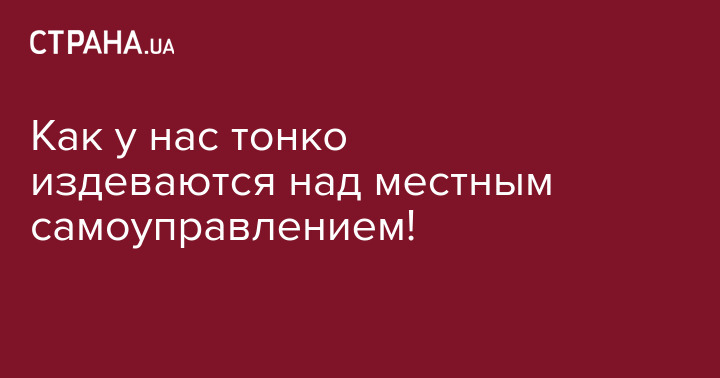 Какое тонкое издевательство над местным самоуправлением. Завтра во втором чтении голосуется Госбюджет на следующий год и изменения в Бюджетный кодекс, от которых местное самоуправление потеряет ряд доходов: 4,5 млрд грн забрали из Фонда регионального развития, освободили Укрзализницю от платы за землю в местные бюджеты, уменьшили % зачислений акциза на топливо в местные бюджеты почти в три раза - до 5% (около 7,5 млрд грн), экологический сбор тоже не попадет на места, уменьшены дотация и субвенция на образование и медицину на 5 млрд грн