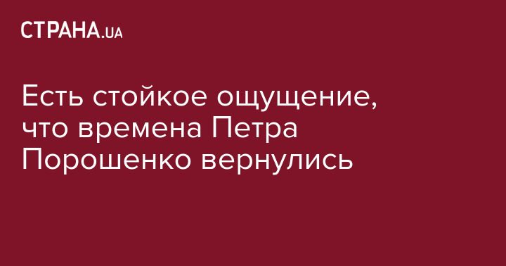 Сегодня стойкое ощущение, что времена Петра Порошенко вернулись.