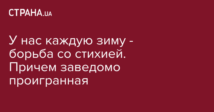 У нас же каждый год "борьба со стихией". Причём всегда заведомо проигрышная. Трассы почти не чистят, Киев - совсем. Из села нашего тупикового чёрта с два выедешь. Одни жестянщики в плюсах: аварий - море.