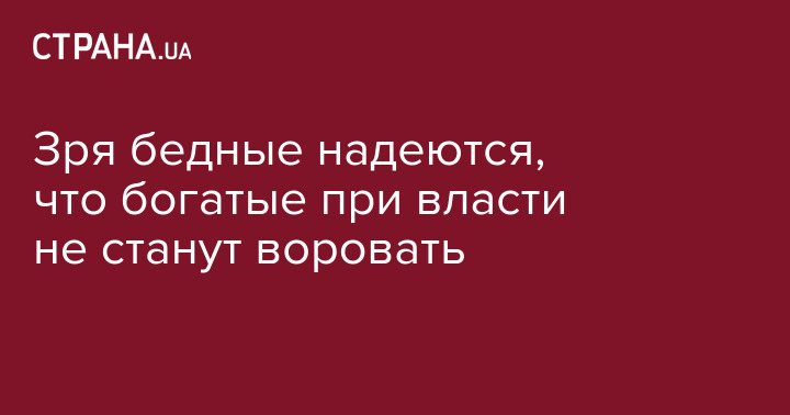 Правда , однако, заключается в том, что большинство людей всегда будут воровать, если отсутствует система контроля и наказания за воровство. В Украине она пока отсутствует. Поэтому кто бы не оказался во власти- бедный или богатый, все будут воровать- такова уж эгоистическая природа человека. Но богатый будет воровать больше, потому что у него выше запросы и у него, как правило, есть опыт и навыки крупномасштабного воровства.