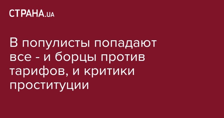 Теперь у нас "популисты" и те, кому не нравится гей-браки, легализация лёгких наркотиков и проституции. Своеобразное мышление надо сказать у инвест-банкира, который лоббирует интересы инвест-конторы Dragon Сapital в приватизации всего что только можно. То есть получить свой процент и урыть из страны.