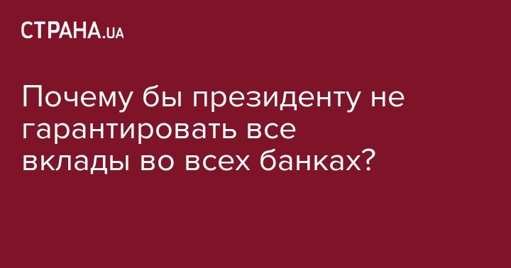 Если Президент так заботится об интересах вкладчиков, почему бы ему не внести в парламент законопроект, гарантирующий выплату всех вкладов вне зависимости от размера и формы собственности банков, в т.ч. частных, на всю сумму депозитов в размере 426 млрд.грн.