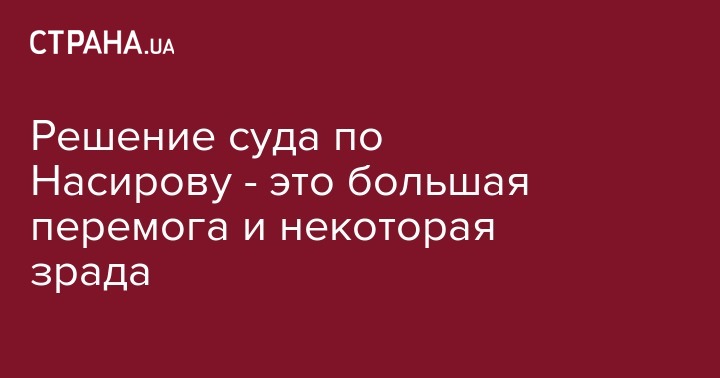 Небольшая #зрада в том, что вместо 2 млрд гривен суд назначил залог в размере 100 млн. Я не знаю размера состояния господина Насирова, не понимаю, насколько подъёмная эта сумма для него и его друзей, но, очевидно, что это неадекватная сумма по сравнению с ущербом, который ему вменяют.