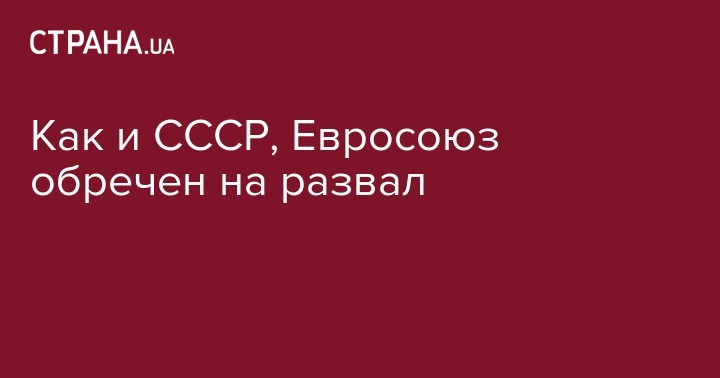 Но на самом деле, ЕС - это искусственно созданное образование, так или иначе обреченное на развал. Как в свое время СССР.