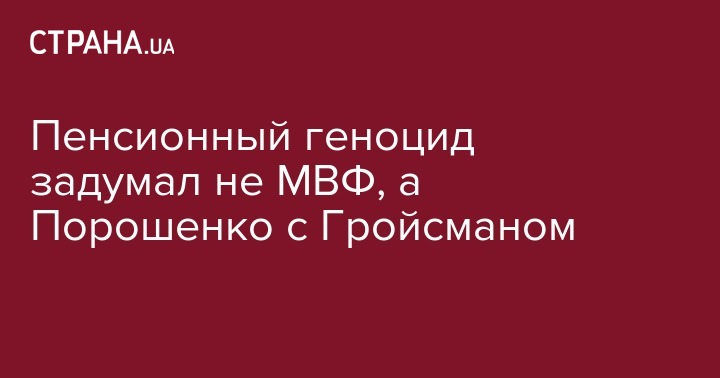 И еще хочу подчеркнуть. Власть постарается переложить ответственность за непопулярную реформу на МВФ. Дескать, это они требуют сократить количество действующих пенсионеров. Однако фонд работает совершенно иначе. В МВФ ставят условие для выделение траншей: вы должны уменьшить дефицит Пенсионного фонда. А уже Порошенко-Гройсман предлагают вариант пенсионного геноцида украинцев.