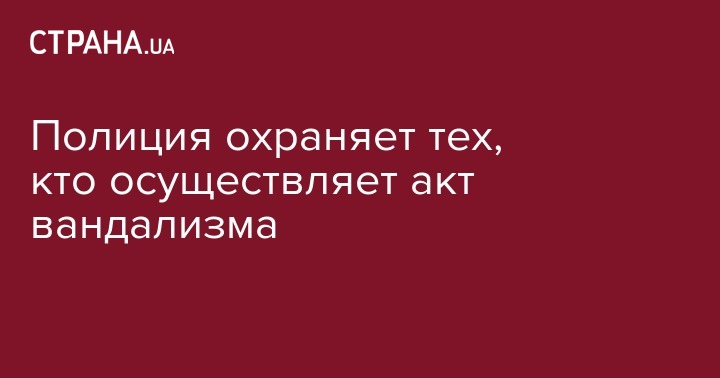 Полиция охраняет осуществляющих акт вандализма (в версии самой полиции - хулиганства, но всё равно смешно). Это Украина. Да.