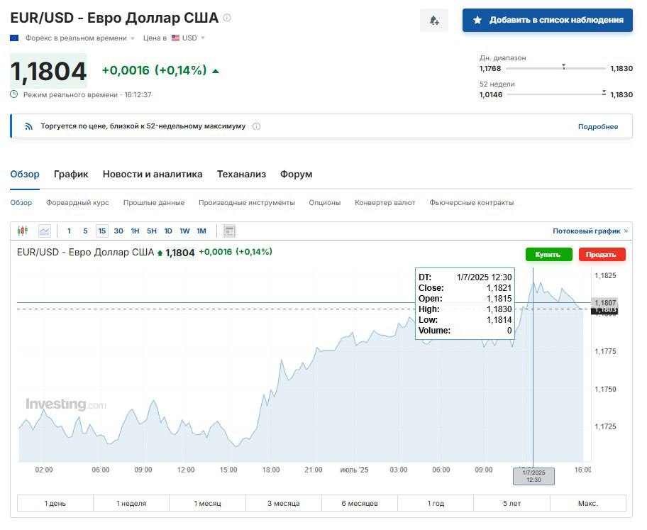 "Ще важливий момент: наближається 9 липня, завершення паузи щодо визначення нових мит Трампа, і не забуваємо, що зміцнення євро на 13%+ проти долара з початку року можна сміливо розглядати як податок на європейський експорт у США. Подивимося, які будуть новини про угоду Штатів з Європою", - прокоментував ситуацію фінансовий аналітик Андрій Шевчишин.