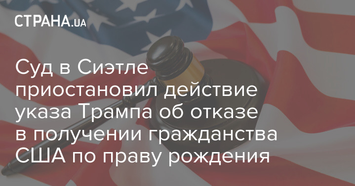 Федеральний суддя у Сіетлі (штат Вашингтон) тимчасово призупинив дію указу президента США Дональда Трампа про відмову у наданні американського громадянства за правом народження деяким категоріям громадян.