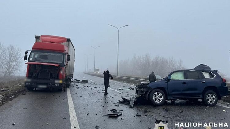 За їхніми даними, аварія сталася на трасі Харків-Київ сьогодні вранці, за кермом був її чоловік. Він пішов на обгін правою смугою, де стояла машина.