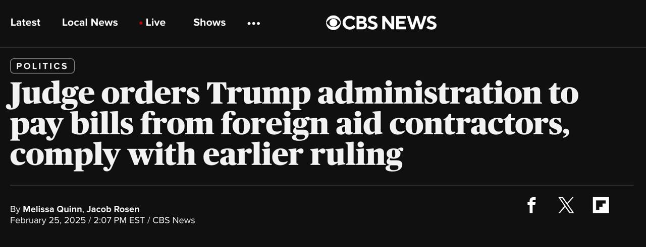 У позові також згадується рішення судді про тимчасове зняття зупинення фінансування іноземної допомоги. Позивачі стверджують, що адміністрація Трампа "не зробила абсолютно нічого, щоб надати сенсу цьому положенню". Тому суддя задовольнив клопотання про примусове виконання свого тимчасового заборонного судового наказу від 13 лютого.