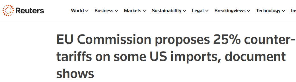 Єврокомісія (ЄК) запропонувала тарифи у відповідь щодо США на рівні 25% з 16 квітня.