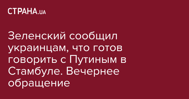 Зеленський повідомив українцям, що готовий говорити із Путіним у Стамбулі. Вечірнє звернення