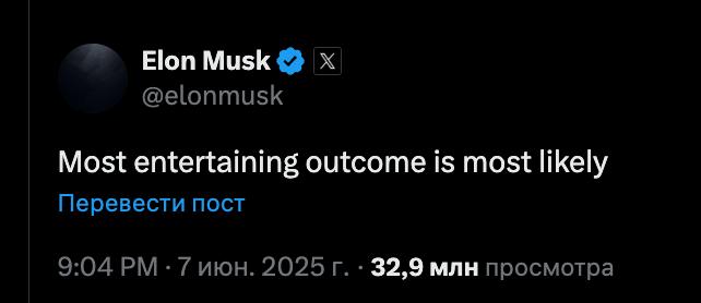 Американський мільярдер і глава SpaceX Ілон Маск опублікував загадковий пост, яка, ймовірно, стосується їхніх стосунків із президентом США Дональдом Трампом.