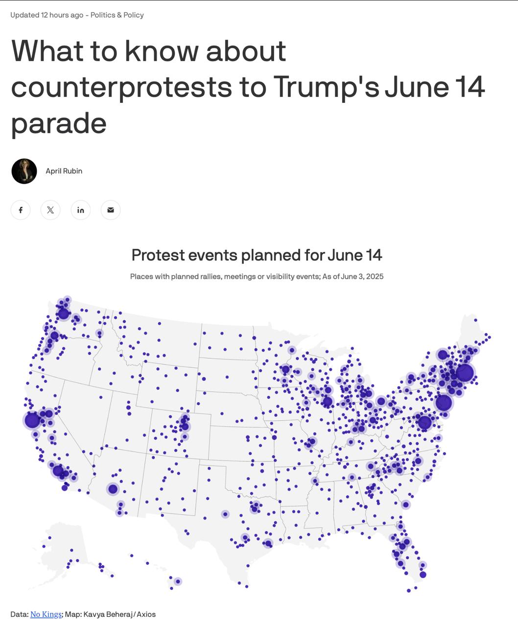 Понад 100 орієнтованих на Демократичну партію США організацій збирають на 14 червня, день народження президента США Дональда Трампа, масові протести проти його дій. Станом на 10 червня понад 13 тисяч осіб підтвердили свою участь у 320 заходах по всій країні.