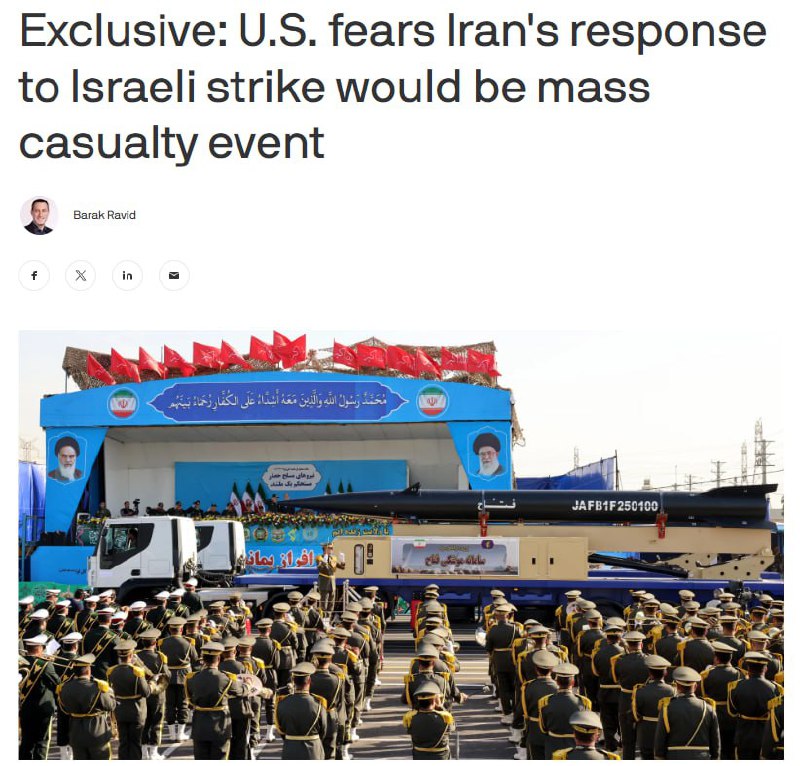 США побоюються, що якщо дипломатичні зусилля проваляться, Ізраїль завдасть удару вже у найближчі вихідні. Іран може атакувати не лише Ізраїль, а й американські об'єкти в регіоні. У зв'язку з цим Вашингтон почав виводити із зон ризику дипломатів та сім'ї військовослужбовців.