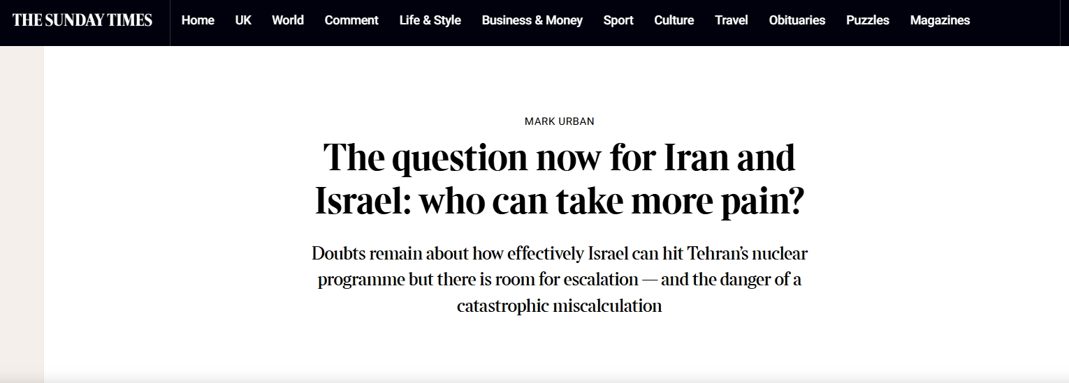 "Питання в тому, у кого більше можливостей посилити біль. На цей час це Ізраїль. Як показали перші обстріли, він здатний завдати Ірану серйозної шкоди - і може зробити набагато більше, націлившись на ключові об'єкти інфраструктури, такі як нафтові термінали, або, зрештою, застосувавши свій ядерний арсенал. Іран, навпаки, може тільки збільшити кількість того, що вже застосовується — ракетні удари, хоча їхня точність гірша, ніж ізраїльська зброя, а багато ключових цілей в Ізраїлі перебувають у підземних укриттях. Якщо Іран піде на ескалацію і завдасть ударів по економічній інфраструктурі Ізраїлю, такій як електростанції або нафтопереробні заводи, це просто викличе сильніші удари у відповідь", - пише видання.