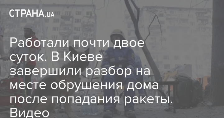 Працювали майже дві доби. У Києві завершили розбір на місці обвалення будинку після влучення ракети. Відео
