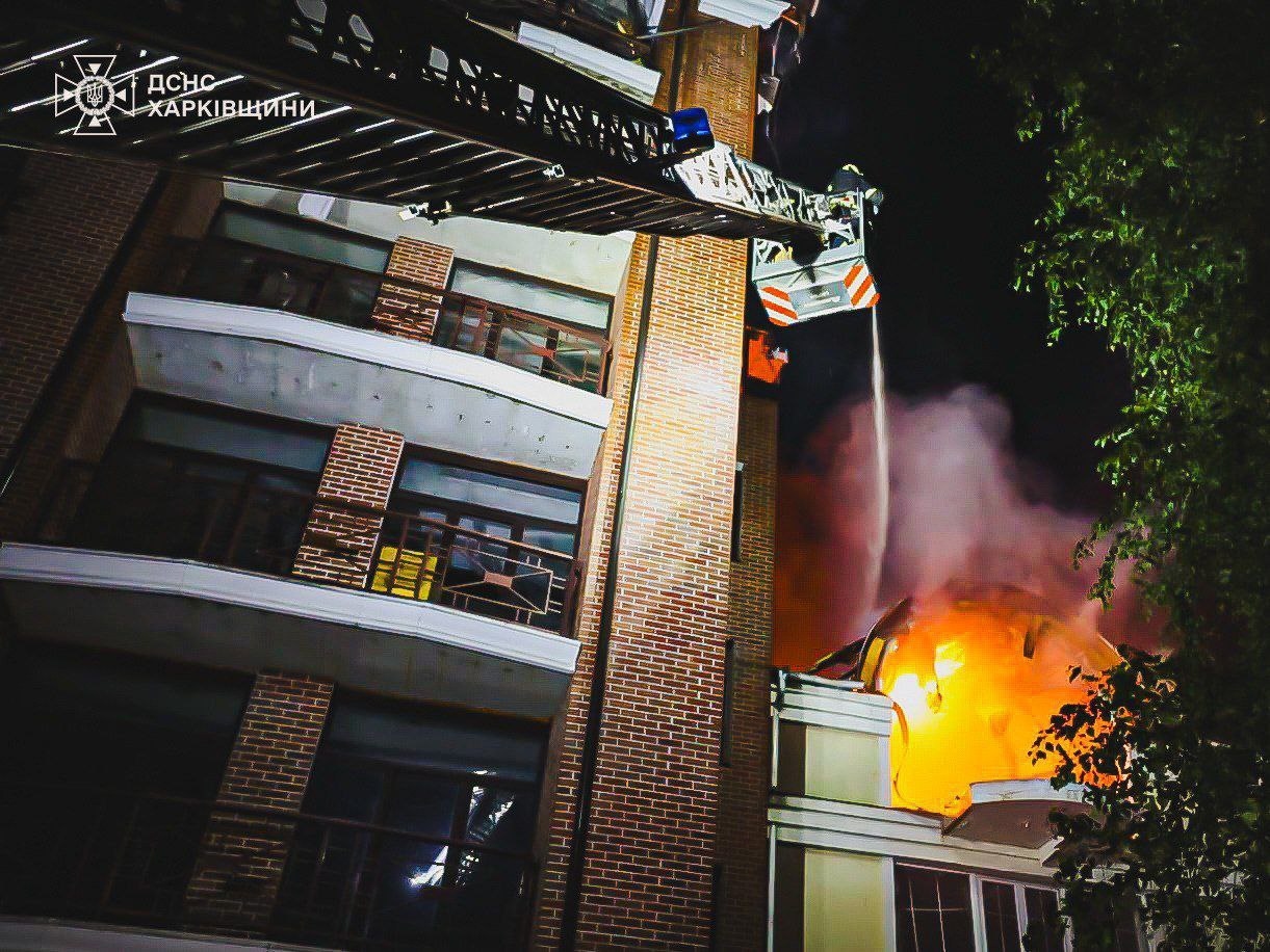 07:56 Внаслідок нічної атаки Харкова було пошкоджено три ангари на території підприємства. Також спалахнули дах недобудованої шестиповерхової будівлі та господарська споруда.