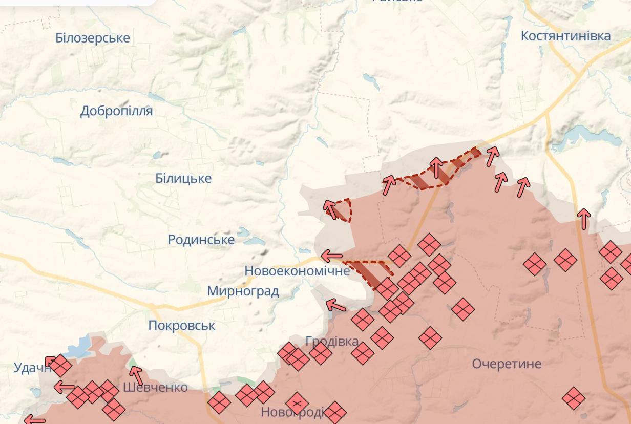 11:05 Армія РФ просунулась на трьох ділянках на схід від Покровська та захопила село Шевченка Перше, повідомляє Deep State.