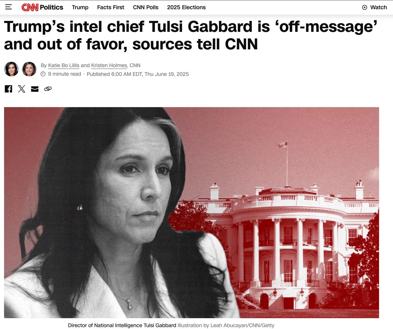 При цьому ще місяць тому чиновники Білого дому говорили, що президент "не лише любить Габбард, а й насолоджується її компанією", попри критику з боку багатьох членів адміністрації. Але останнім часом ставлення Трампа змінилося і президент став вважати її "невідповідною" у питаннях конфлікту на Близькому Сході.