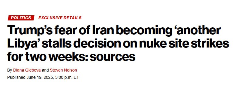 Президент США Дональд Трамп зволікає з ухваленням рішення про вступ до ізраїльсько-іранської війни, тому що боїться, що Іран стане "ще однією Лівією".