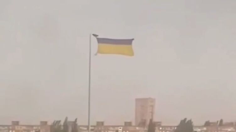 На найвищому флагштоку у Кривому Розі державний прапор виявився зірваним вітром.