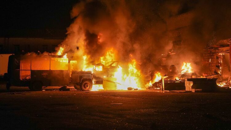 Знищено легкові та вантажні автомобілі, а також автобус.