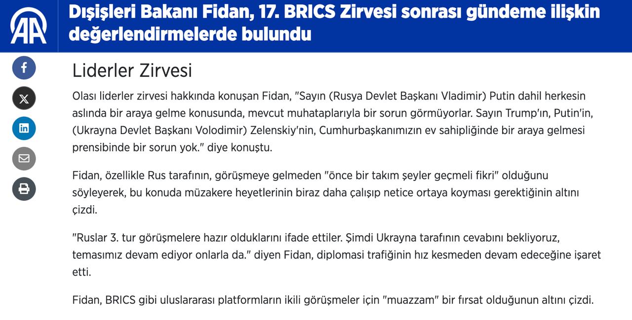 Нагадаємо, раніше Фідан говорив, що Туреччина готова прийняти третій раунд російсько-українських переговорів. За його словами, сторони зможуть знайти компроміс в умовах припинення вогню, але для цього буде потрібно кілька зустрічей.