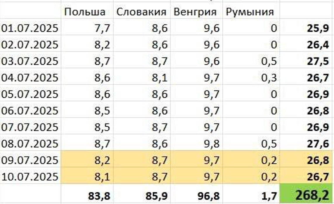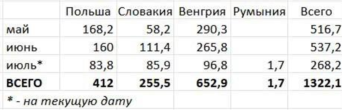 За першу декаду липня Україна імпортувала з Євросоюзу 268,2 млн. кубів природного газу. Це майже половина обсягу, який країна імпортувала весь червень та більше половини обсягу імпорту у травні.