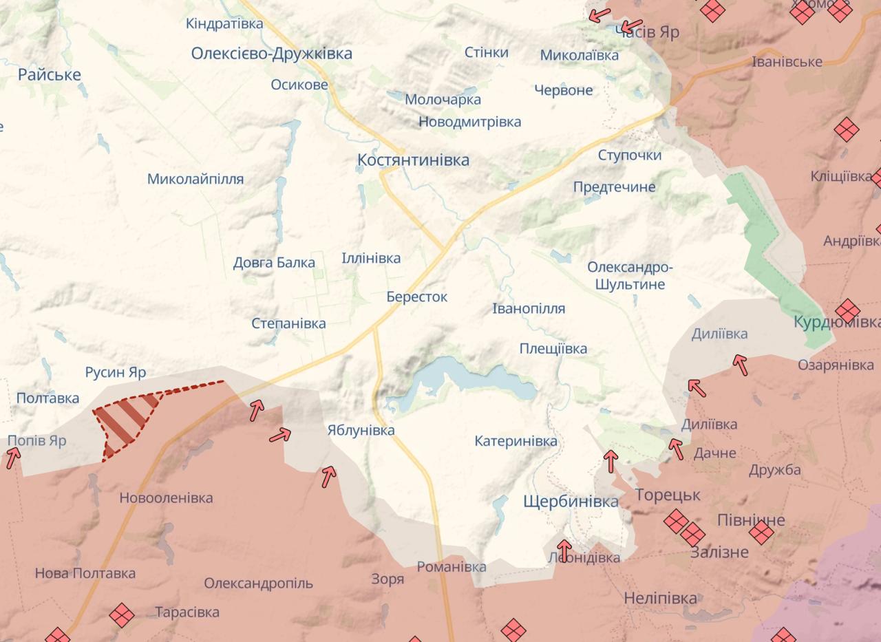 У той самий час на Костянтинівському напрямі російська армія просунулась у бік Русиного Яру.