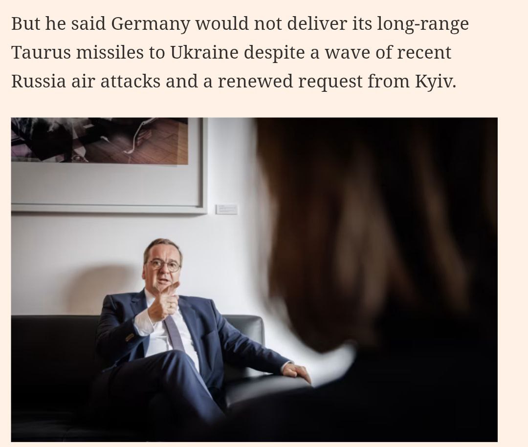 Про це заявив міністр оборони Німеччини Борис Пісторіус в інтерв'ю газеті Financial Times.