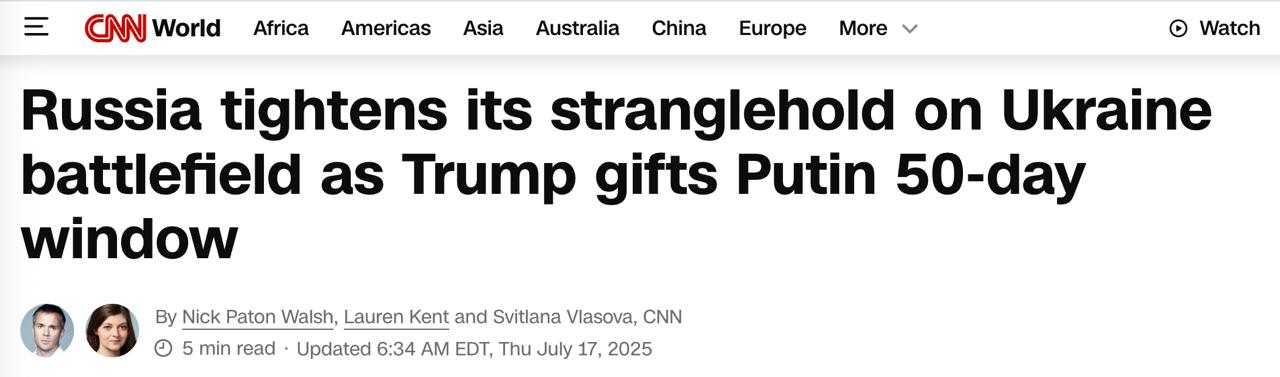 Армія РФ найближчими тижнями або навіть днями піде в масштабний наступ в Україні. У ньому збираються задіяти близько 160 тисяч військових. Надані президентом США Дональдом Трампом 50 днів дають Москві можливість скористатися досягненнями останніх тижнів.