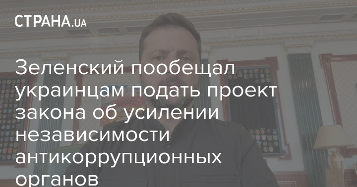 Володимир Зеленський заявив, що внесе до Верховної Ради законопроект, який має посилити незалежність антикорупційних органів.