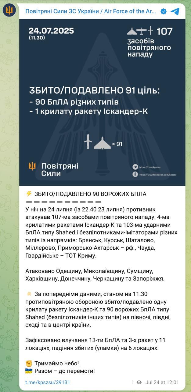 Атаковані були Одеська, Миколаївська, Сумська, Харківська, Донецька, Черкаська області та Запоріжжя.