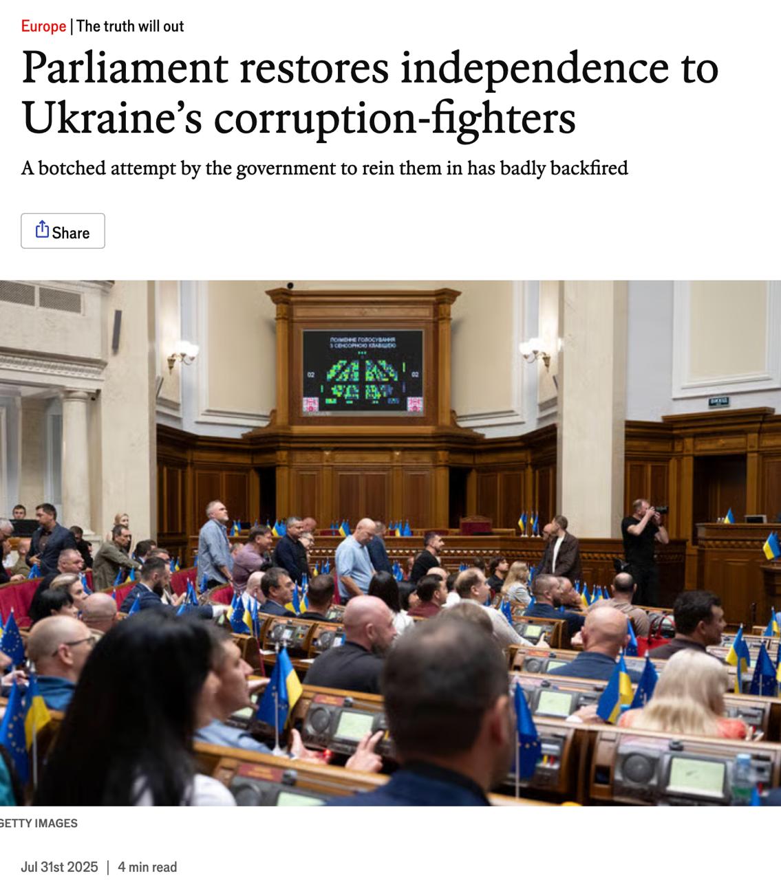 Однак повернення повноважень НАБУ "не усуває фундаментальних проблем, що призвели до кризи - рішучість уряду за будь-яку ціну захищати своїх прихильників та гіперцентралізований процес ухвалення рішень, що обертається навколо пана Єрмака", пише видання.