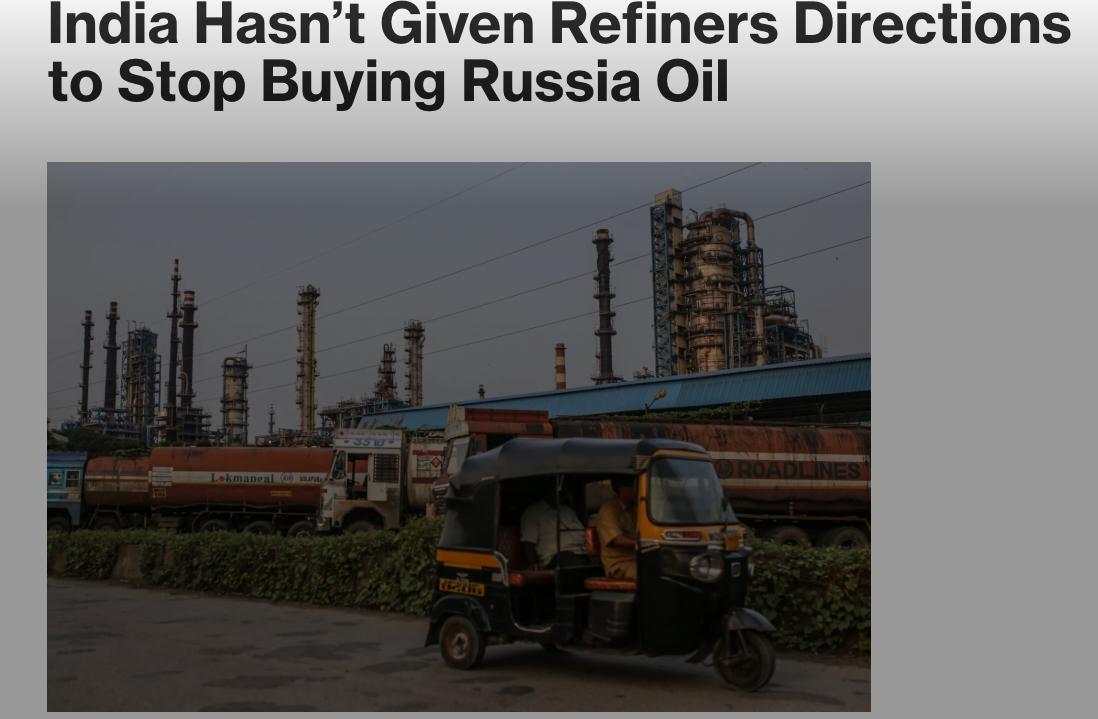 За даними видання Bloomberg, в Індії не давали вказівок нафтопереробним заводам країни відмовитись від російської нафти.