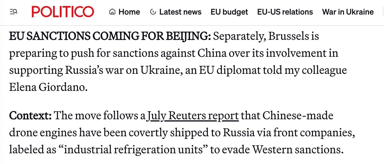 За його словами, ЄС знав про постачання китайських дронів до Росії ще до появи повідомлень у пресі.
