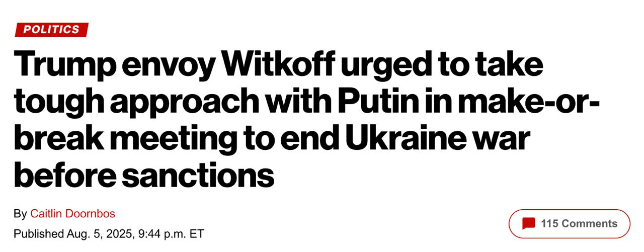 Напередодні візиту Стіва Віткоффа до Москви група з нацбезпеки Білого дому, відповідальна за війну в Україні, провела кілька зустрічей, намагаючись з'ясувати, як Вашингтон може якнайкраще переконати Росію припинити війну. Спецпредставнику Трампа доручили зайняти більш жорстку позицію щодо російського президента Володимира Путіна, але "поки незрозуміло, чи прийме Віткофф цю раду до уваги".