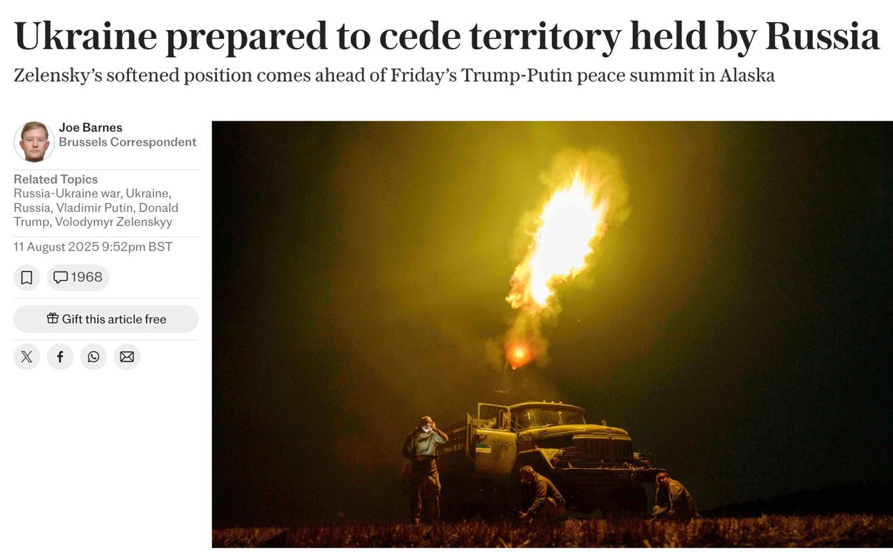 Видання називає це "пом'якшенням позиції", хоча Зеленський і раніше був згоден на заморожування війни лінією фронту. Вказується, що Європа згодна з цією пропозицією Києва.