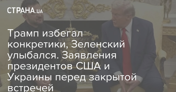 Перед переговорами Трамп заявив, що сподівається на прогрес у діалозі з Зеленським, як і, за його словами, раніше "добився доброго прогресу" на зустрічі з президентом РФ Володимиром Путіним. Американський лідер допустив можливість тристоронньої зустрічі у разі успіху переговорів у Вашингтоні. Він наголосив, що ця війна "не його, а Байдена", і висловив упевненість, що "угода можлива" і світ можна досягти в короткі терміни. При цьому Трамп уникав конкретики – він не став говорити про гарантії безпеки для України, про можливу участь американських військ та про те, як США бачать питання територіальних вимог Москви. Від подібних питань він уникав, обмежуючись загальними формулюваннями про необхідність завершити війну.