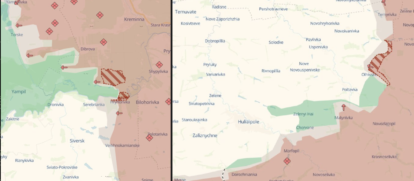 Армія РФ просунулась у Серебрянському лісництві (остання підконтрольна Україні територія в Луганській області) та поблизу Ольговського на сході Запорізької області.