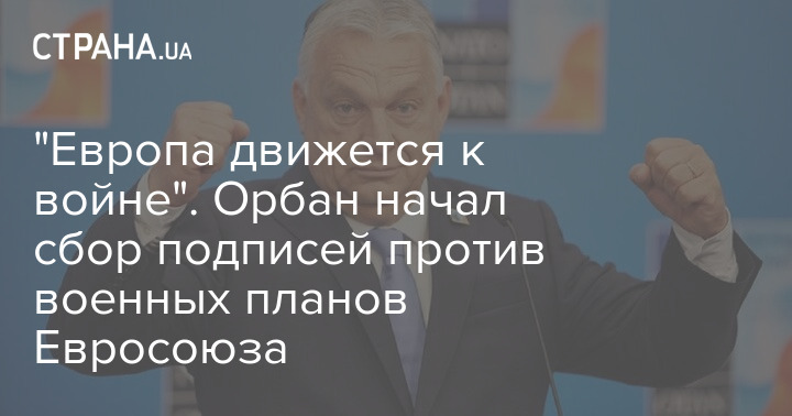 "Європа рухається до війни. Кілька тижнів тому в Копенгагені був представлений брюссельський військовий план: Європа платить - українці, воюйте, і Росія буде виснажена. Ми не знали, скільки це коштує і скільки це триватиме. Замість стратегії брюссельці бігли тільки по мріях. Я їм дав: зрозуміло. кампанію проти Угорщини. Звинувачення в шпигунстві, скандали з фальшивими новинами і юридичні трюки. Ми не можемо дивитись на це без дій! Потрібно ще раз продемонструвати, що угорський народ не хоче війни. Ось чому сьогодні розпочинаємо збір підписів проти військових планів Брюсселя. Ми будемо там у кожному місті і в кожному селі, бо зараз нам потрібні усі миролюбні угорці!” – написав Орбан.