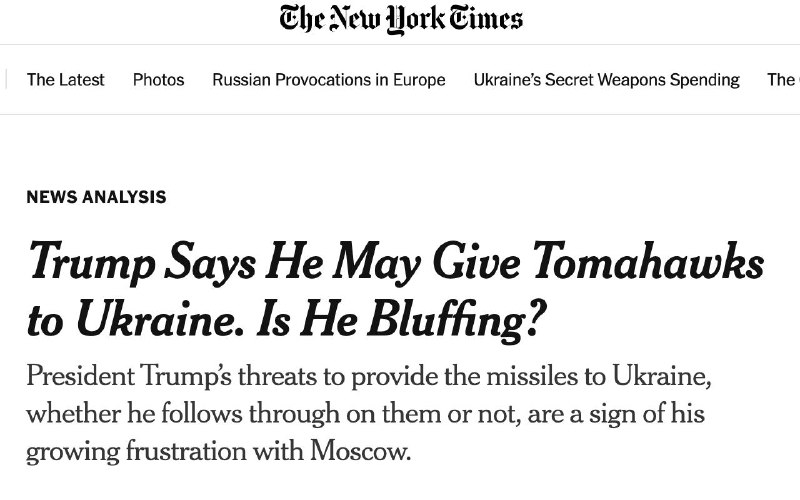 Пентагон уже розробив плани продажу чи передачі американських далекобійних ракет "Томагавк" Києву, якщо голова Білого дому Дональд Трамп віддасть відповідний наказ. Тим часом американські військові вважають, що постачання цих ракет Україні наблизить США до прямої конфронтації з Росією.