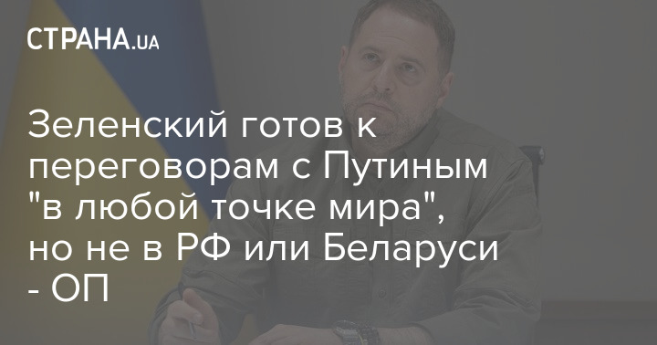 Президент України Володимир Зеленський готовий до переговорів із російським головою Володимиром Путіним "у будь-якій точці світу", але не на території Росії чи Білорусі.