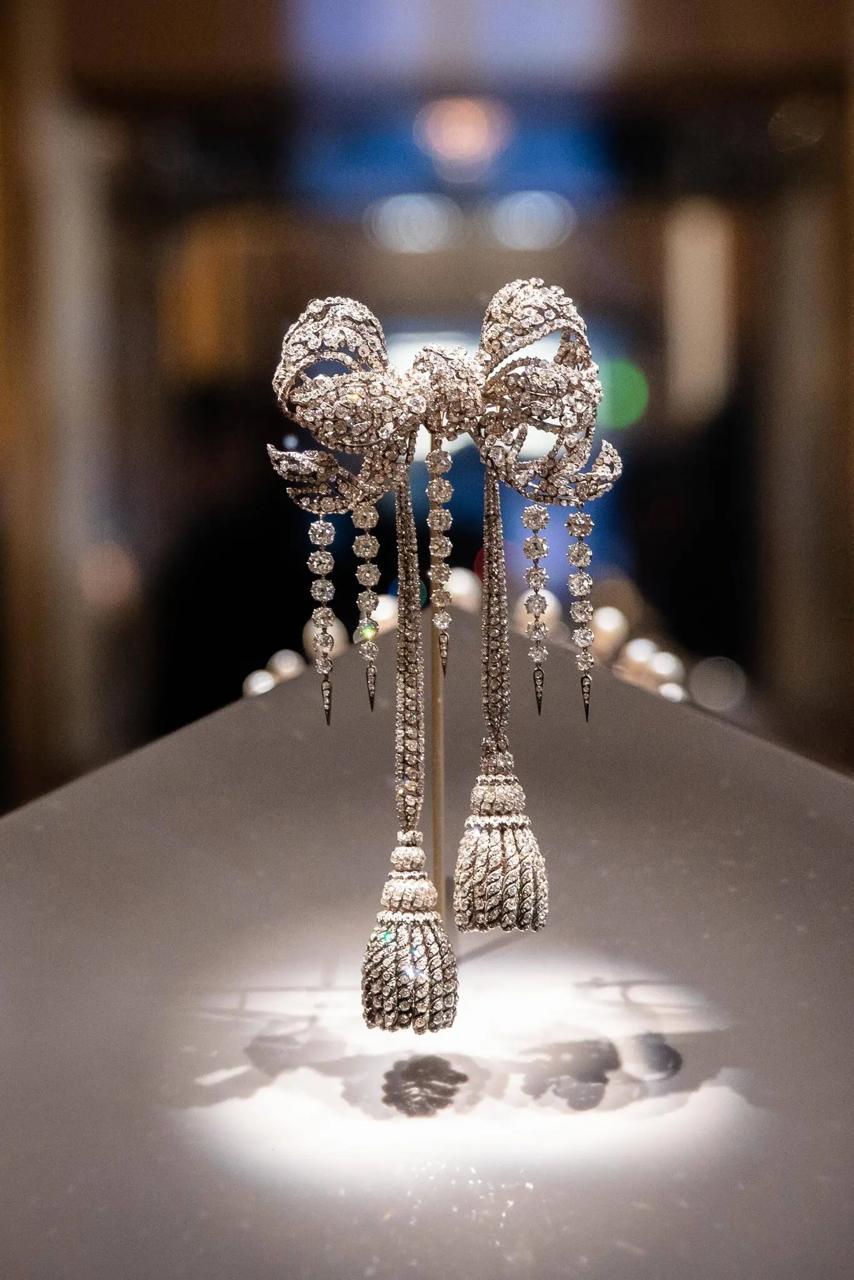 • Декоративна брошка імператриці Євгенії у вигляді банта з рухомими пензликами, прикрашена 2438 діамантами та 196 алмазами огранювання "троянда". Виготовлена у 1855 році Франсуа Крамером.