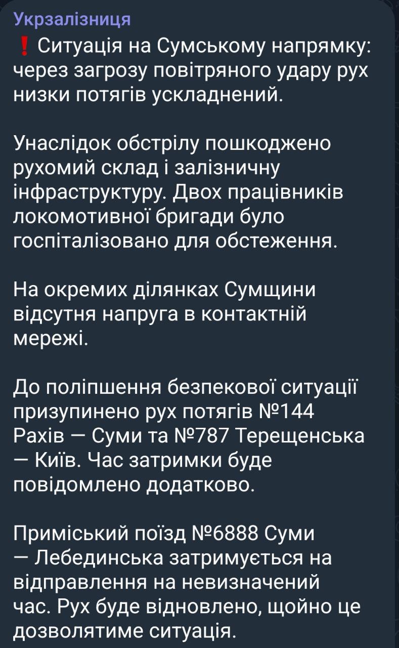 8.45 У Сумах був удар по залізничній станції, повідомила влада міста.